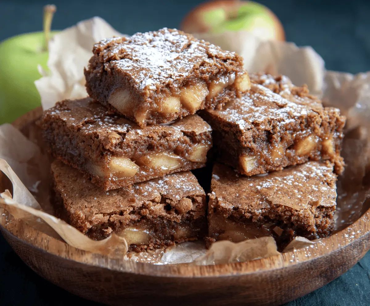 When the brownies are cool, dust the top with powdered sugar for a lovely finish. Cut them into squares and enjoy these deliciously moist, apple-filled treats!