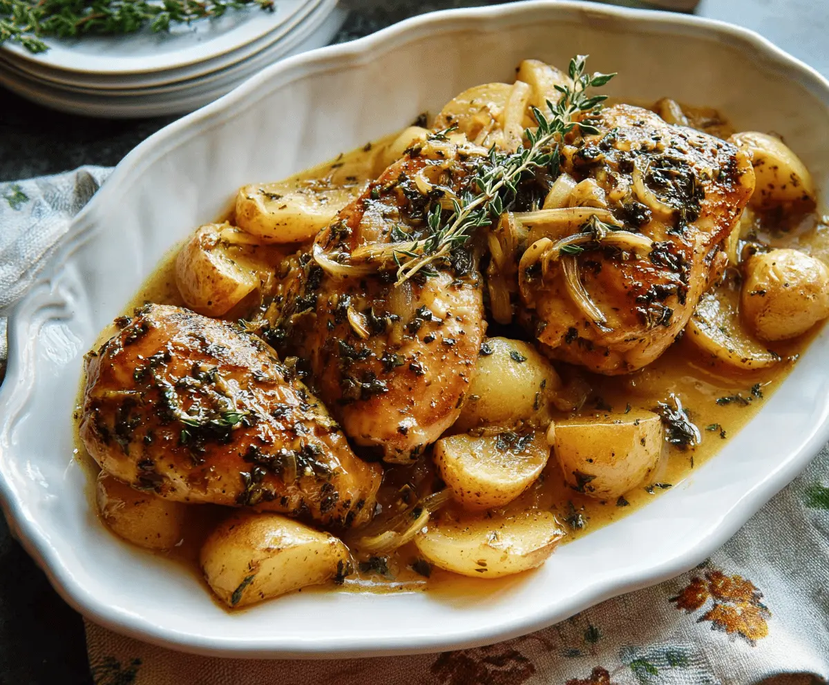 This dish pairs wonderfully with mashed potatoes, roasted vegetables, or a simple rice pilaf to soak up that flavorful apple cider sauce. Enjoy your meal! 🍏🍗