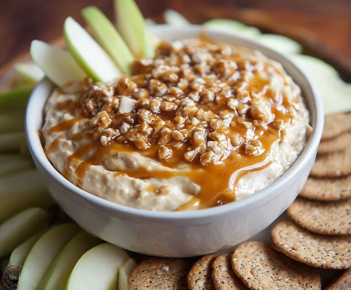 This sweet and creamy Apple Toffee Dip is perfect for parties or just a cozy snack at home. Enjoy every bite! 🌟