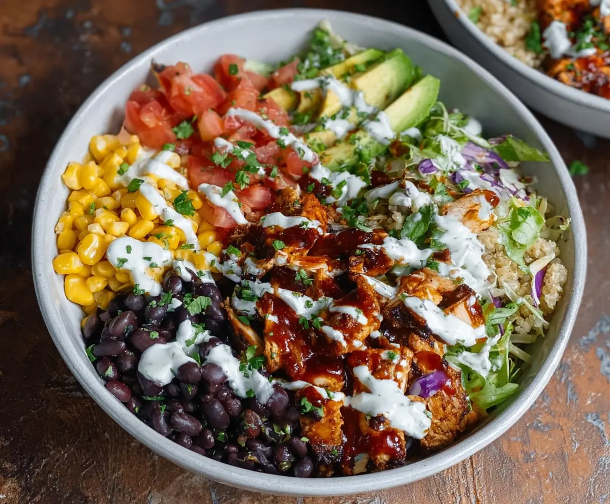 This BBQ Chicken Ranch Bowl is a tasty mix of juicy chicken, creamy ranch, and fresh veggies. It’s like a party in a bowl that’s also healthy!