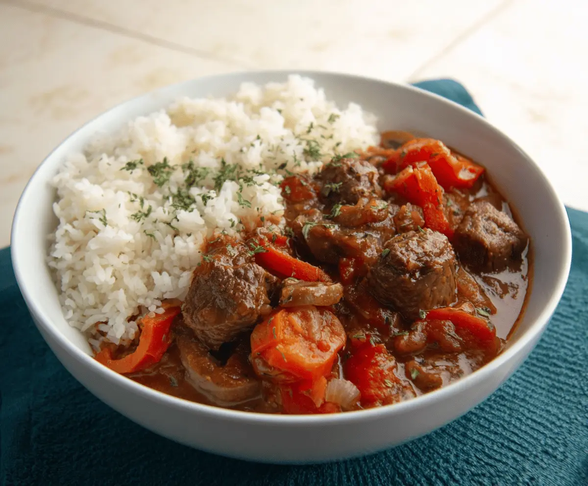 This beef stew with rice is a warm hug in a bowl! Tender beef, carrots, and potatoes simmer together in a tasty broth, making a hearty meal that’s perfect for chilly days.