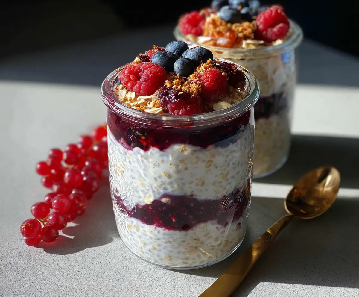 Absolutely! If using frozen berries, just thaw them before layering on top. You can heat them slightly in the microwave or let them sit in the fridge overnight. They’ll still add that lovely berry flavor to your overnight oats!