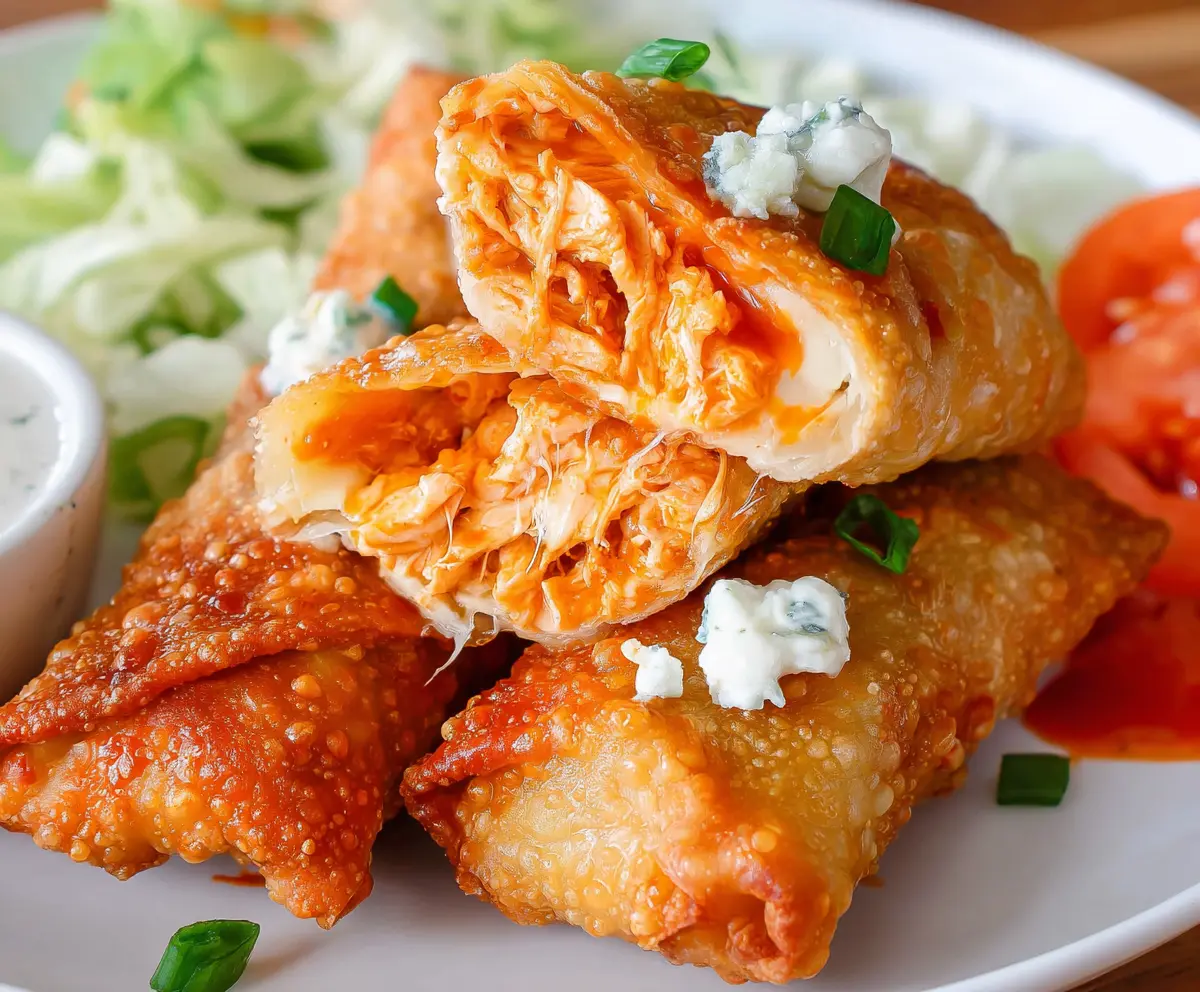 Buffalo Chicken Egg Rolls are a crispy, spicy treat! Filled with shredded chicken, creamy cheese, and zesty buffalo sauce, they are perfect for snacking or sharing at a party.