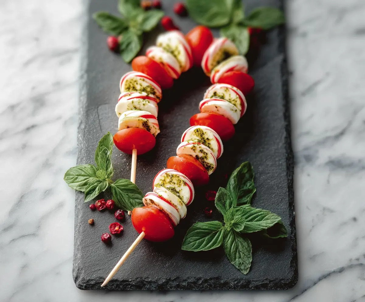 These Candy Cane Caprese Skewers are sure to brighten any holiday table with their delicious flavors and cheerful presentation!