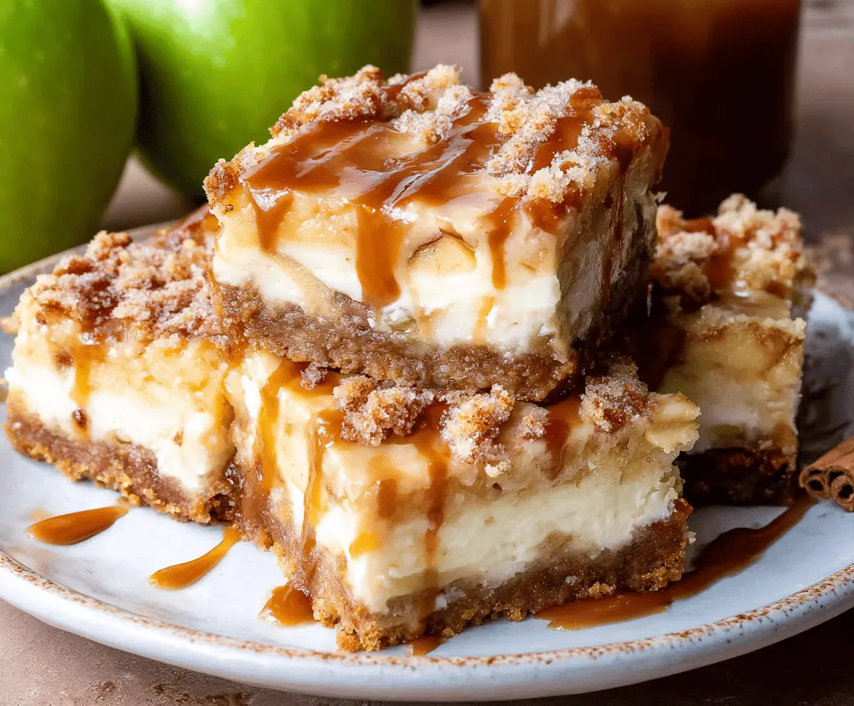 These Caramel Apple Cheesecake Bars blend a buttery graham cracker crust, creamy cheesecake, delightful spiced apples, crumbly streusel topping, and a luscious caramel drizzle. Perfect for any occasion, they’re sure to be a favorite!