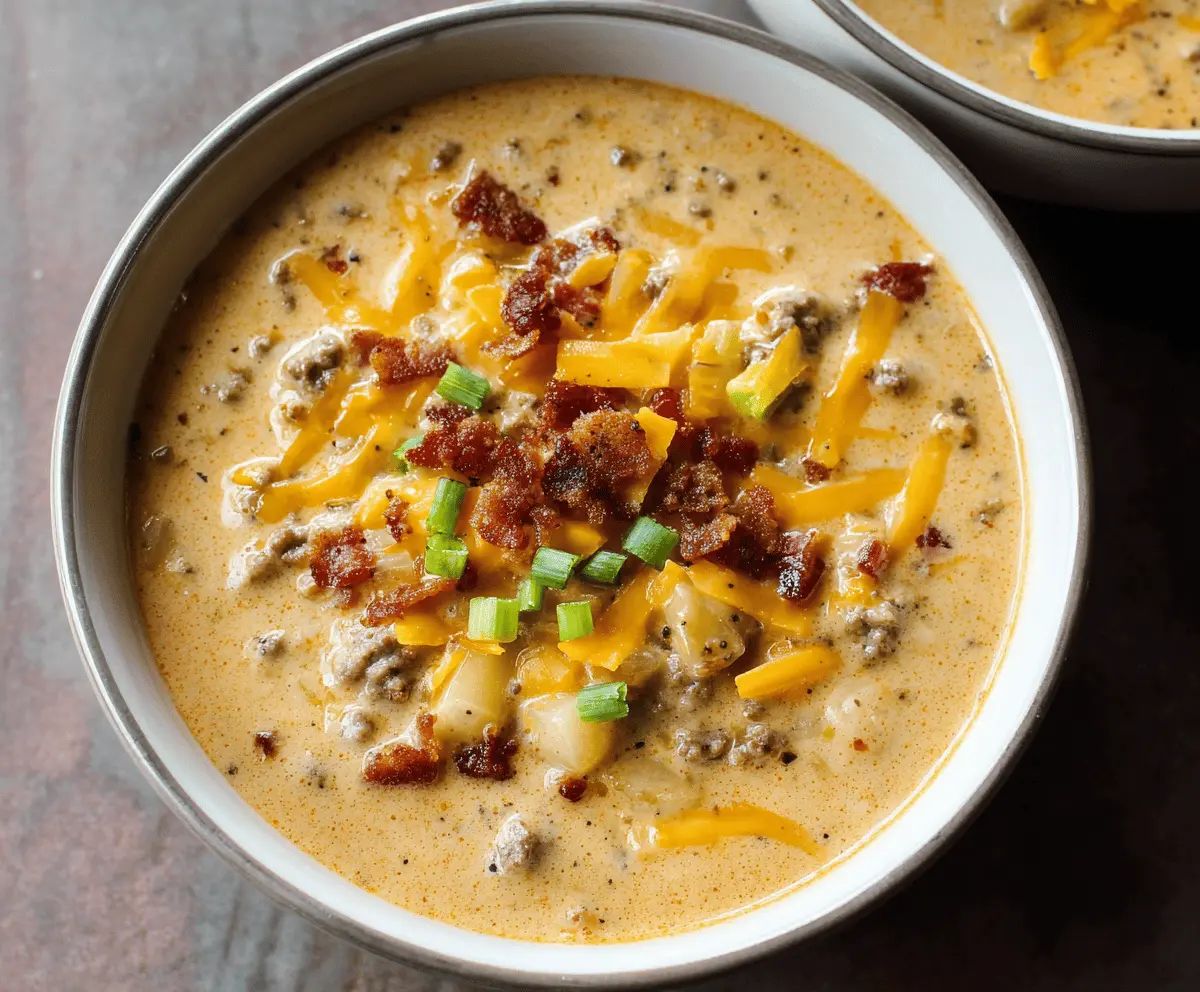 Dig into this rich and creamy Cheeseburger Soup for a taste that’s just like your favorite cheeseburger but in a cozy bowl!