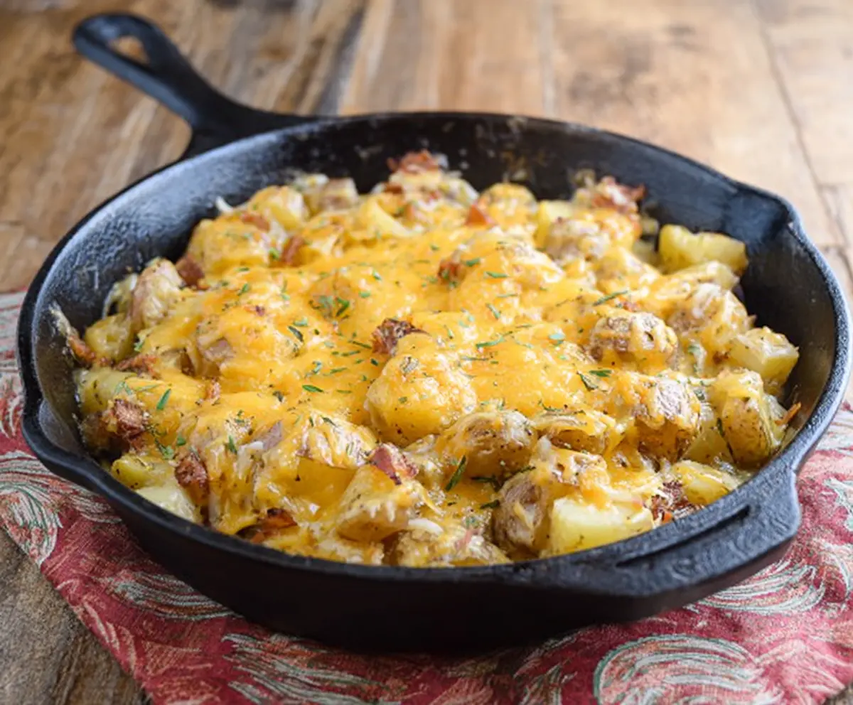Once it’s out of the oven, let it cool for a minute, then garnish with freshly chopped parsley or chives for a pop of color. Serve it hot, straight from the skillet, and enjoy your delightful Cheesy Potato Skillet!