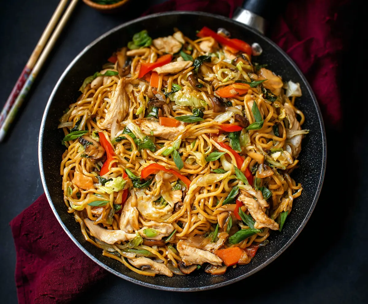 Chicken Yakisoba Noodles is a tasty dish that’s quick to make. It features tender chicken, colorful veggies, and soft noodles all tossed in a yummy sauce that’s hard to resist!