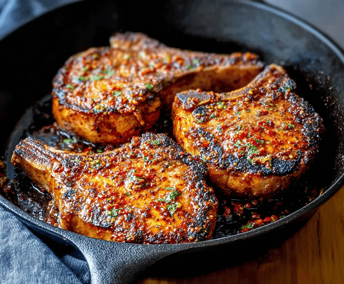 Heat the olive oil in a large cast-iron skillet over medium-high heat until it shimmers (just a few minutes). Carefully add the marinated pork chops to the skillet, making sure not to overcrowd them. Sear for about 4-5 minutes on one side until it’s nicely browned. Flip the chops over and cook for another 4-5 minutes until they reach an internal temperature of 145°F (63°C).