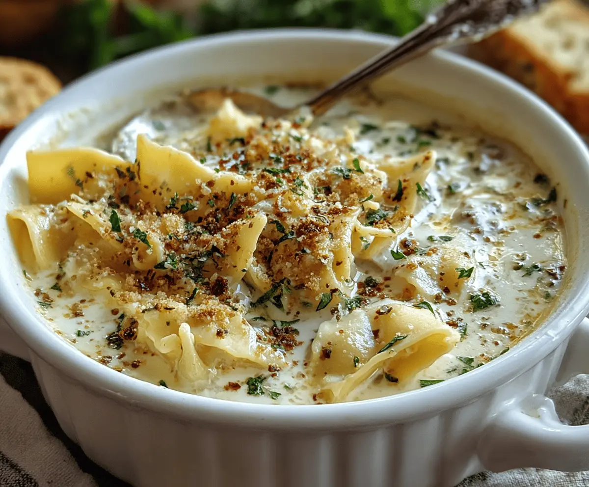 Serve hot with garlic bread on the side for a delightful dipping experience. Enjoy your comforting Creamy Alfredo Lasagna Soup!