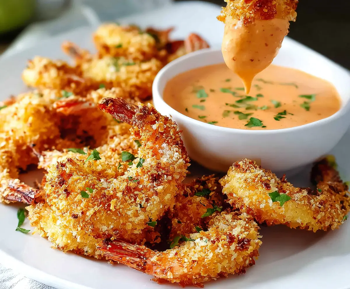 Take each shrimp and first dip it into the seasoned flour, making sure to shake off any excess. Then, dip it into the egg mixture. Finally, coat the shrimp thoroughly with the panko-coconut mixture, pressing lightly to ensure it sticks well. This is what will make your shrimp crispy!