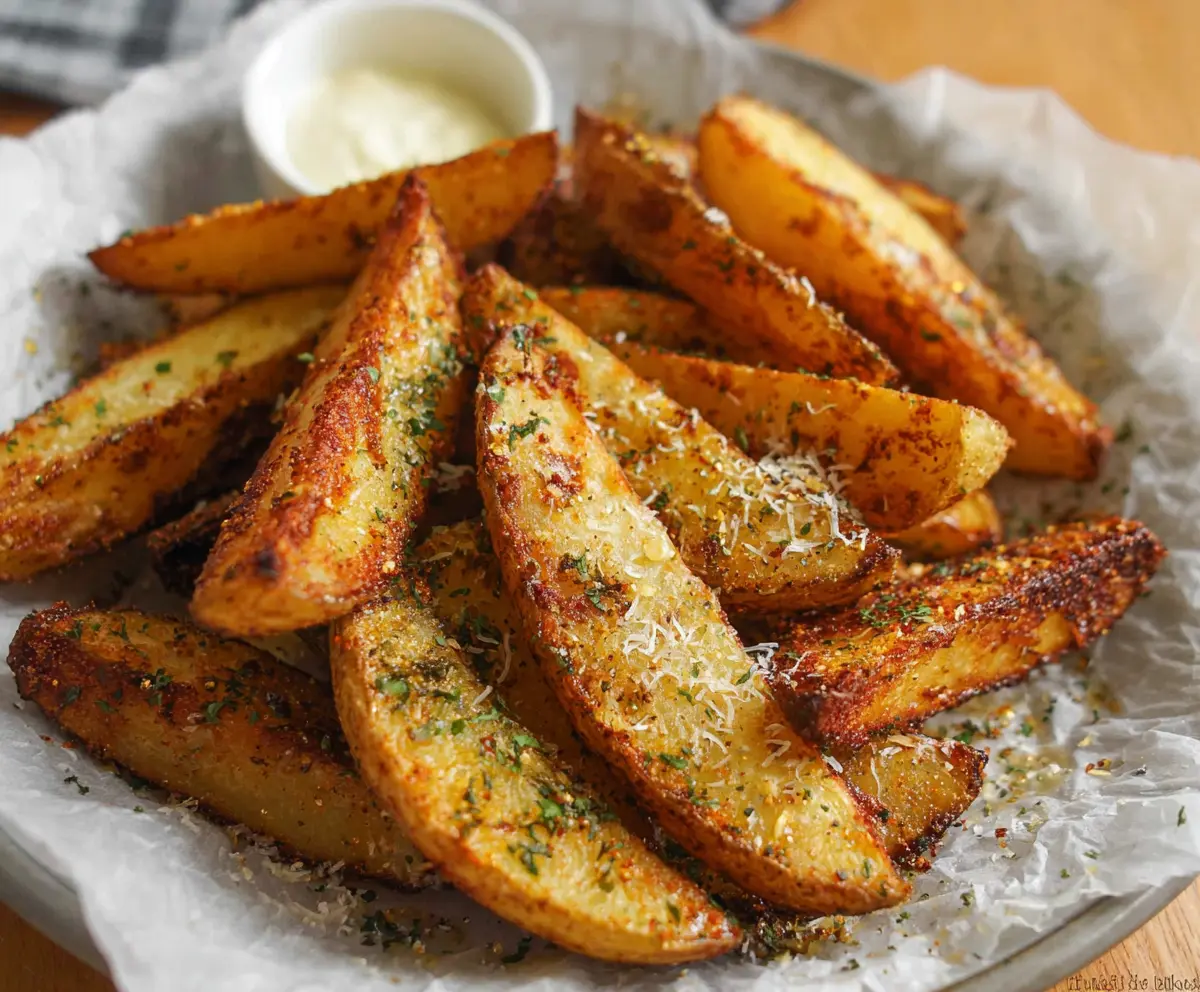 Once they’re out of the oven, sprinkle the crispy wedges with grated Parmesan cheese (if you’re using it), some fresh parsley for color, and a pinch of coarse sea salt for that extra flavor pop!