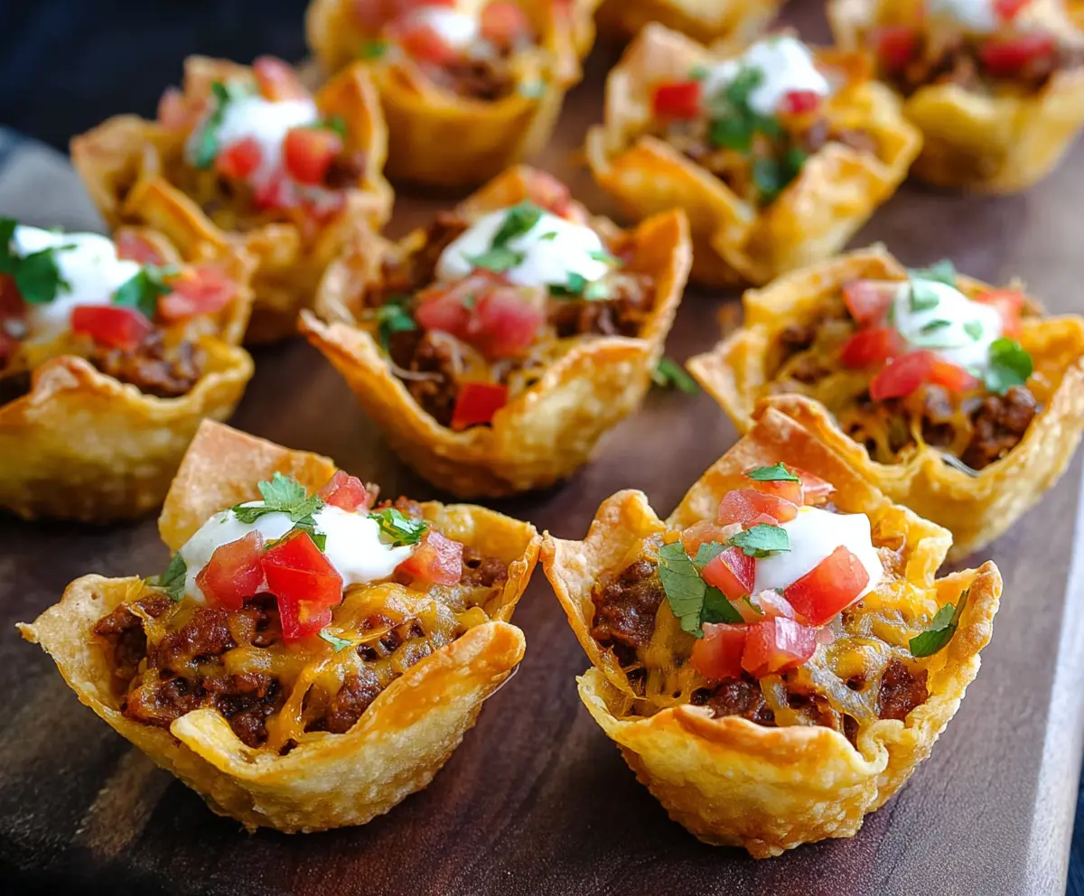 These crunchy nacho cups combine crispy tortillas with savory beef, melted cheese, and fresh toppings—a perfect mini appetizer or party snack!