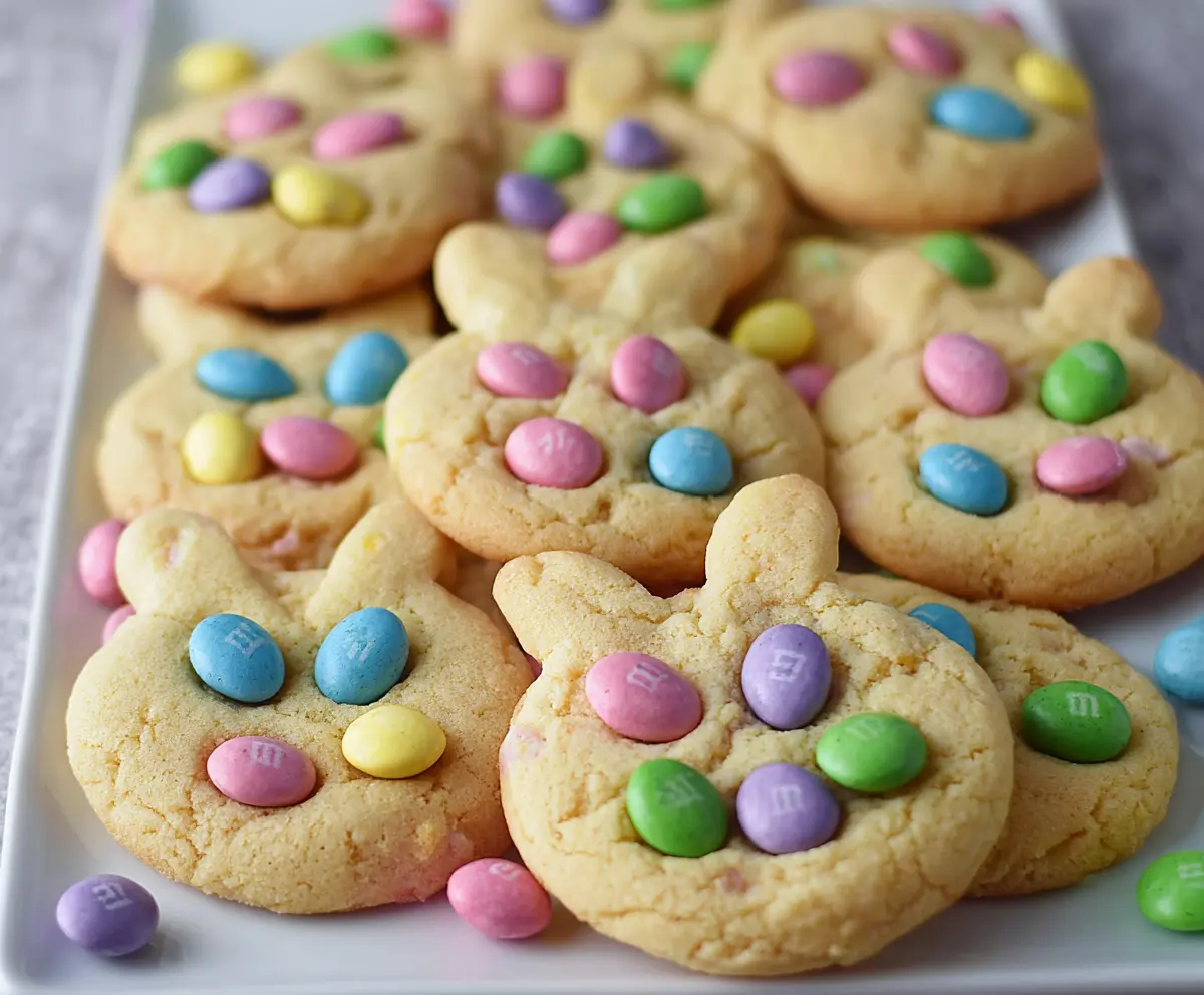 Your festive Easter Bunny M&M’s Cookies are ready to be served! Enjoy their deliciousness with family and friends!