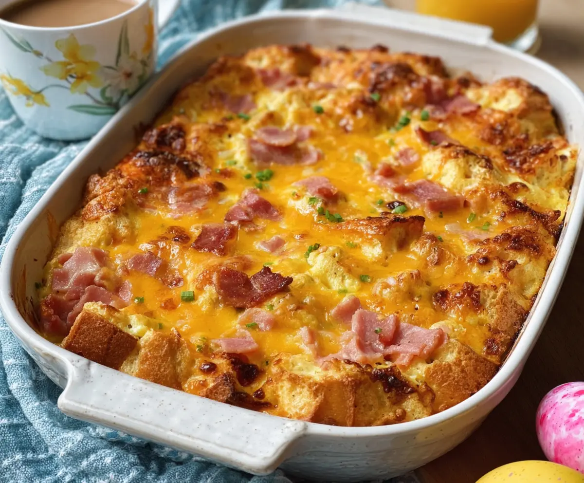 This Easter Cheesy Ham and Egg Casserole is a comforting breakfast that combines eggs, ham, and plenty of melty cheese. It’s easy to make and perfect for feeding a crowd!