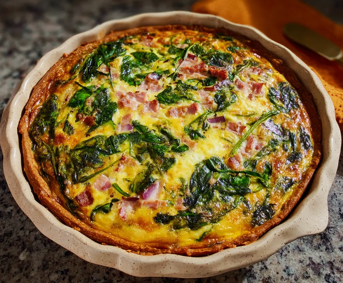 Enjoy your Easter Ham and Spinach Quiche warm or at room temperature—perfect for any gathering!