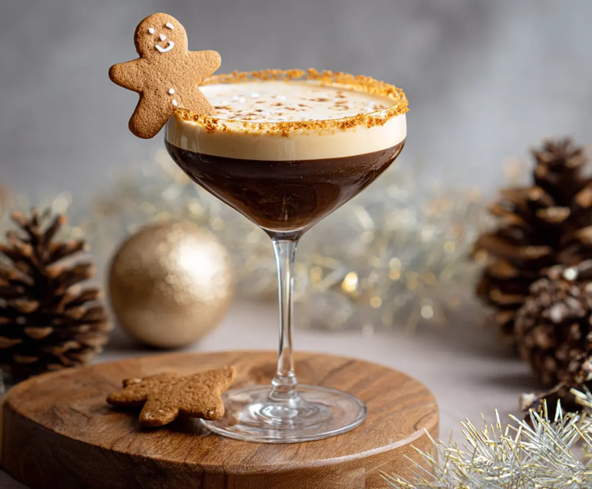 Strain the cocktail into a chilled martini or coupe glass. For a beautiful finishing touch, sprinkle some freshly ground nutmeg or cinnamon on top. Finally, hang a mini gingerbread cookie on the rim of the glass for charm and a tasty treat!