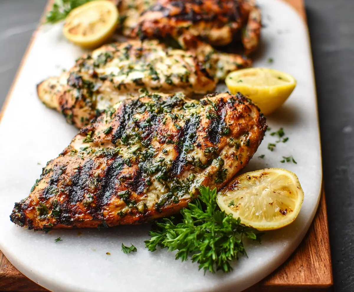 Once the chicken is cooked, remove it from the grill and let it rest for about 5 minutes. This helps keep the juices locked in! After resting, garnish with extra chopped parsley and serve with lemon wedges on the side for a fresh squeeze over the chicken.