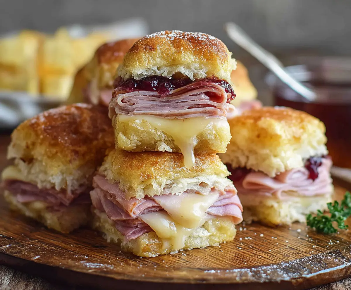 These Monte Cristo sliders are a fun twist on the classic sandwich! Using sweet Hawaiian rolls, they’re filled with ham, turkey, and gooey cheese, then baked to perfection.