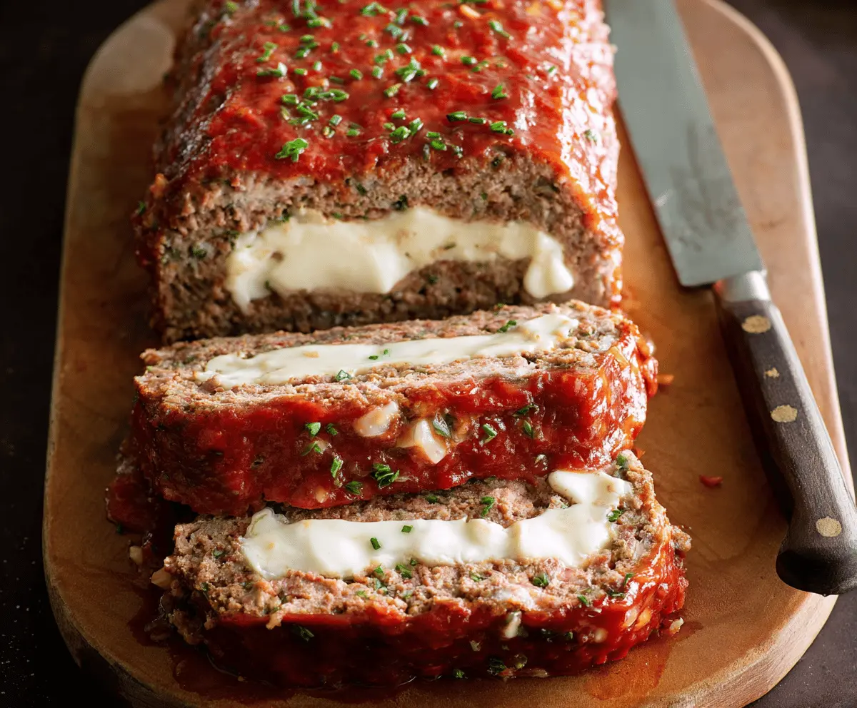After baking, let the meatloaf rest for about 10 minutes. This helps it hold together when you slice it and keeps that melted cheese from spilling out too much.
