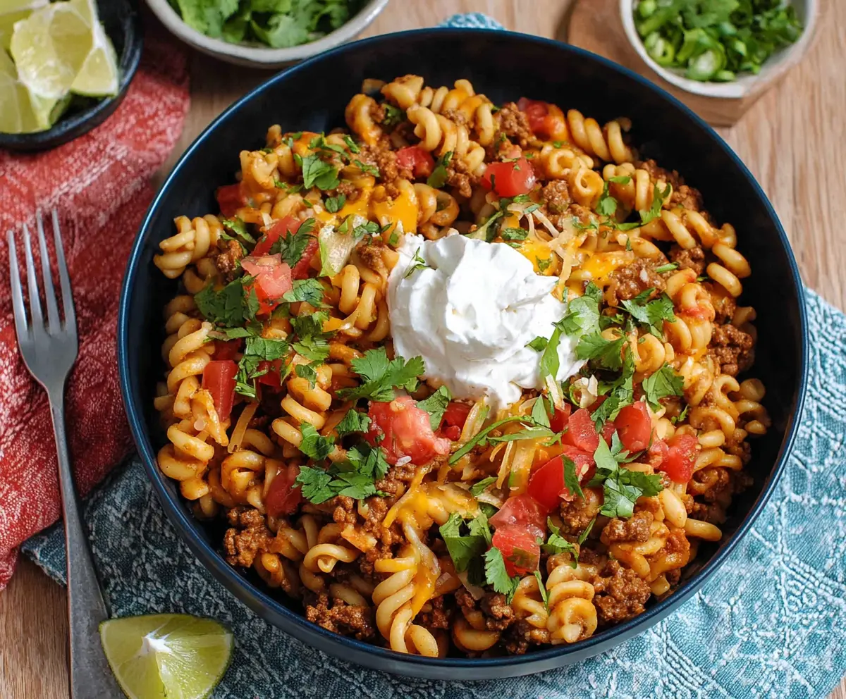 I love how quick it comes together—just throw everything in the pot and stir. It’s the perfect dish for a busy weeknight, plus it’s always a hit with the family. Who doesn’t love tacos in pasta form? 🌮🍝