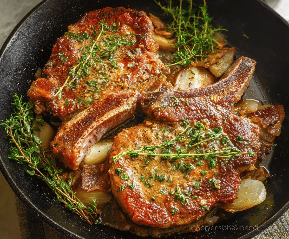 These pan-seared pork chops are juicy and full of flavor. They get a nice golden crust on the outside while staying tender inside—yum!