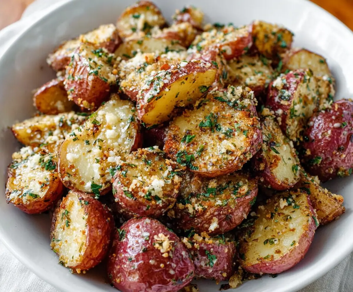 Your crispy, buttery Parmesan garlic red potatoes are now ready to serve! Enjoy them hot as a fantastic side dish with your favorite meal.