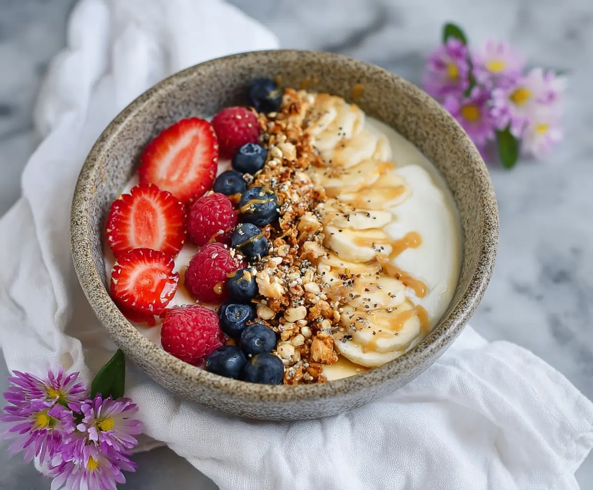 Start your day right with a protein yogurt bowl! This tasty mix features creamy yogurt, fresh fruit, and crunchy nuts. It’s like a party in a bowl!