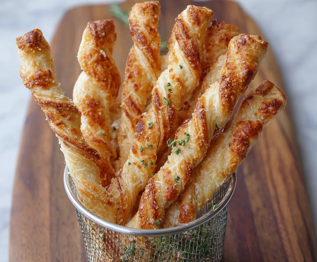 Enjoy your crispy, cheesy Puff Pastry Parmesan Twists perfect for sharing!
