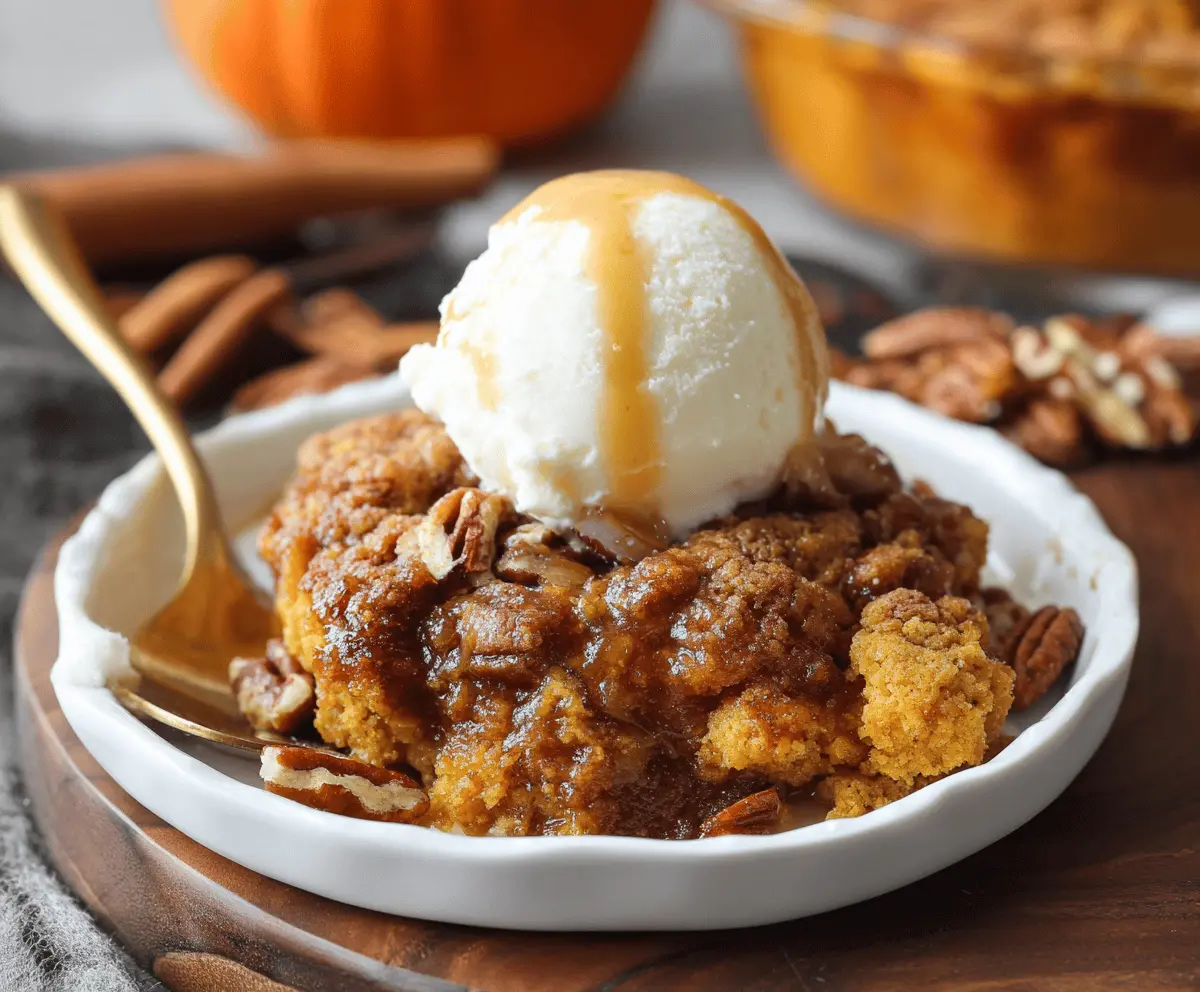 I love serving this cobbler with a scoop of vanilla ice cream on top. It melts and mixes with the pumpkin goodness—talk about a treat! 🍦 Don’t forget to share it or you might just end up eating it all yourself!