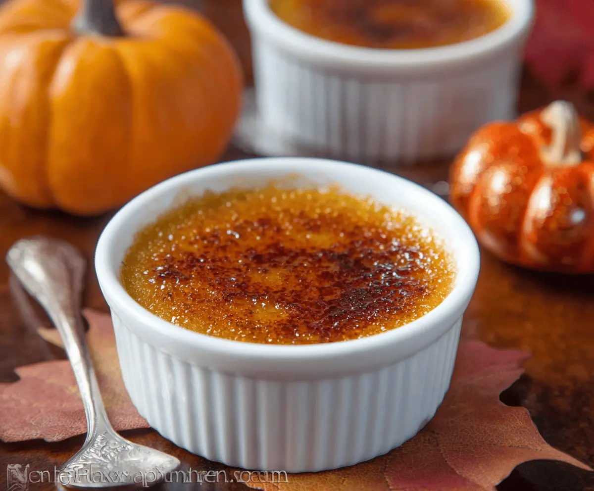 This Pumpkin Crème Brûlée is a cozy dessert combining creamy pumpkin with hints of spice. The crispy caramelized sugar on top adds a delightful crunch that makes each bite special!