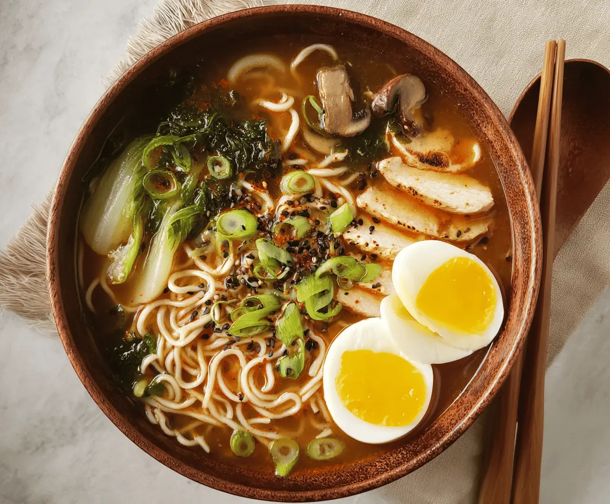 This ramen noodle soup is warm, comforting, and full of flavor. With soft noodles, rich broth, and tasty toppings like green onions and eggs, it’s a bowl of happiness!