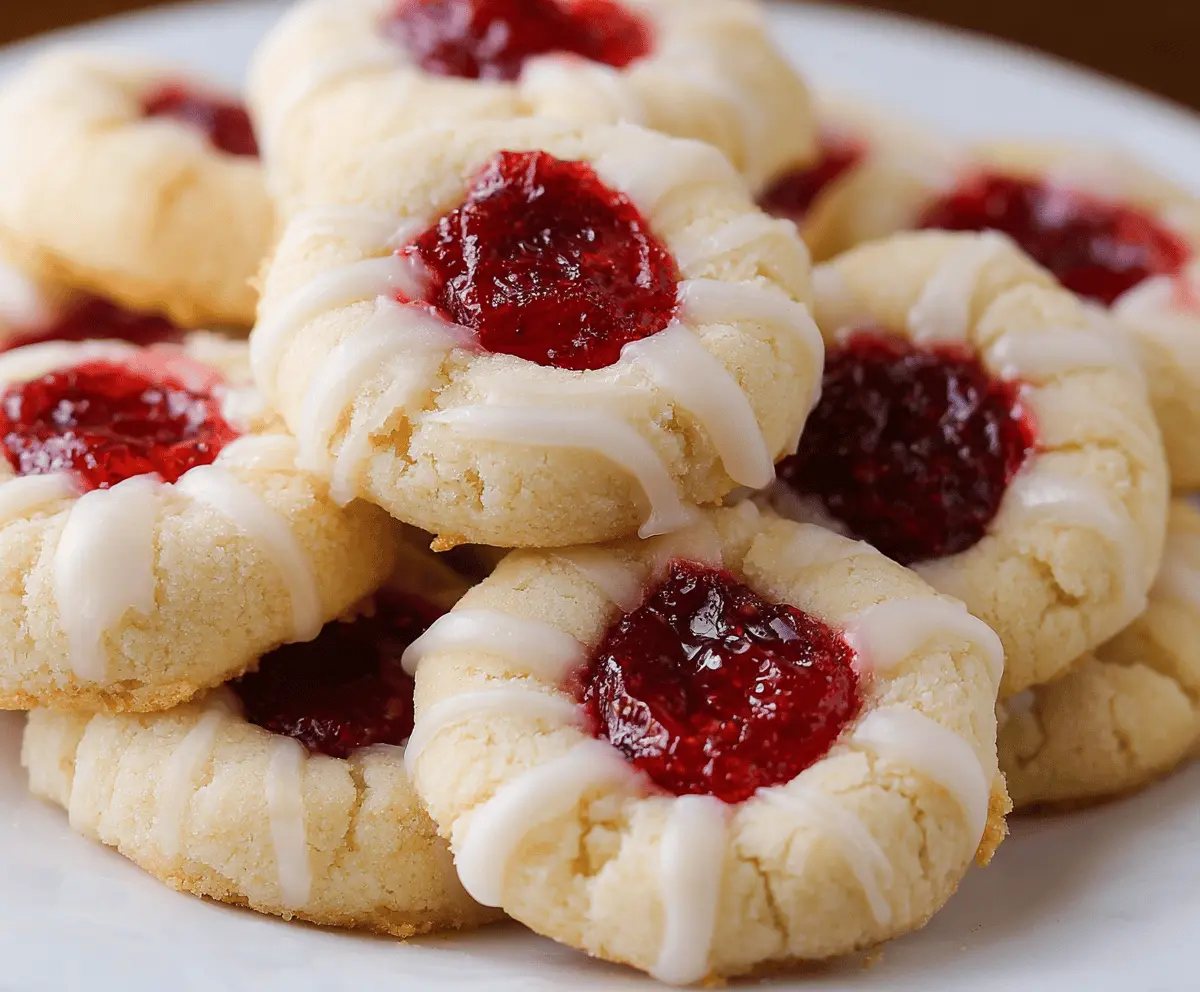 These Raspberry and Lemon Thumbprint Cookies are the perfect blend of sweet and tangy. Soft, buttery cookies are filled with delicious raspberry jam and zesty lemon goodness!