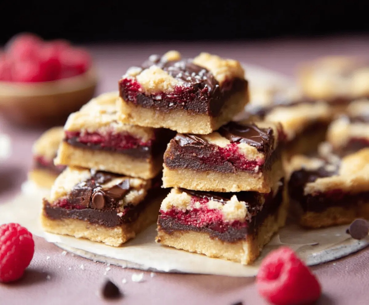 These Raspberry Chocolate Chip Shortbread bars are a sweet treat with a buttery base, juicy raspberries, and delicious chocolate chips. They are perfect for sharing or enjoying all by yourself!