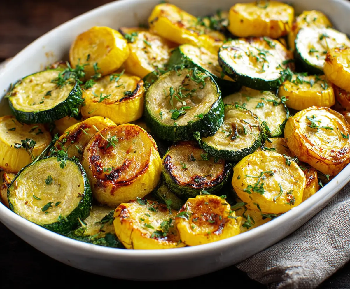 This roasted zucchini and squash dish is bright and colorful, perfect for adding some sunshine to your table. The sweet flavors come alive when perfectly roasted!
