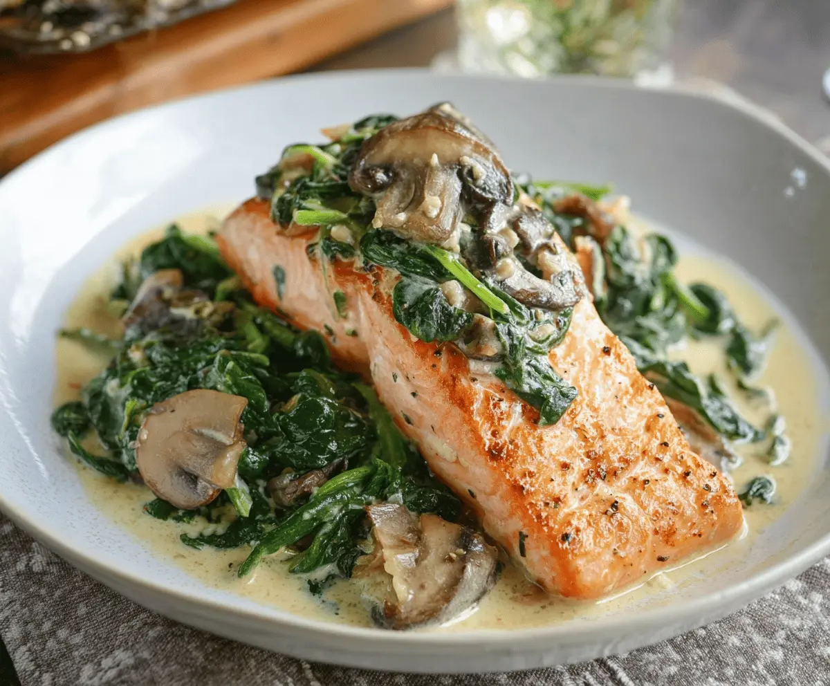 This tasty Salmon Florentine is a delightful dinner option that brings together juicy salmon, fresh spinach, and earthy mushrooms. It’s a meal that’s both healthy and comforting!