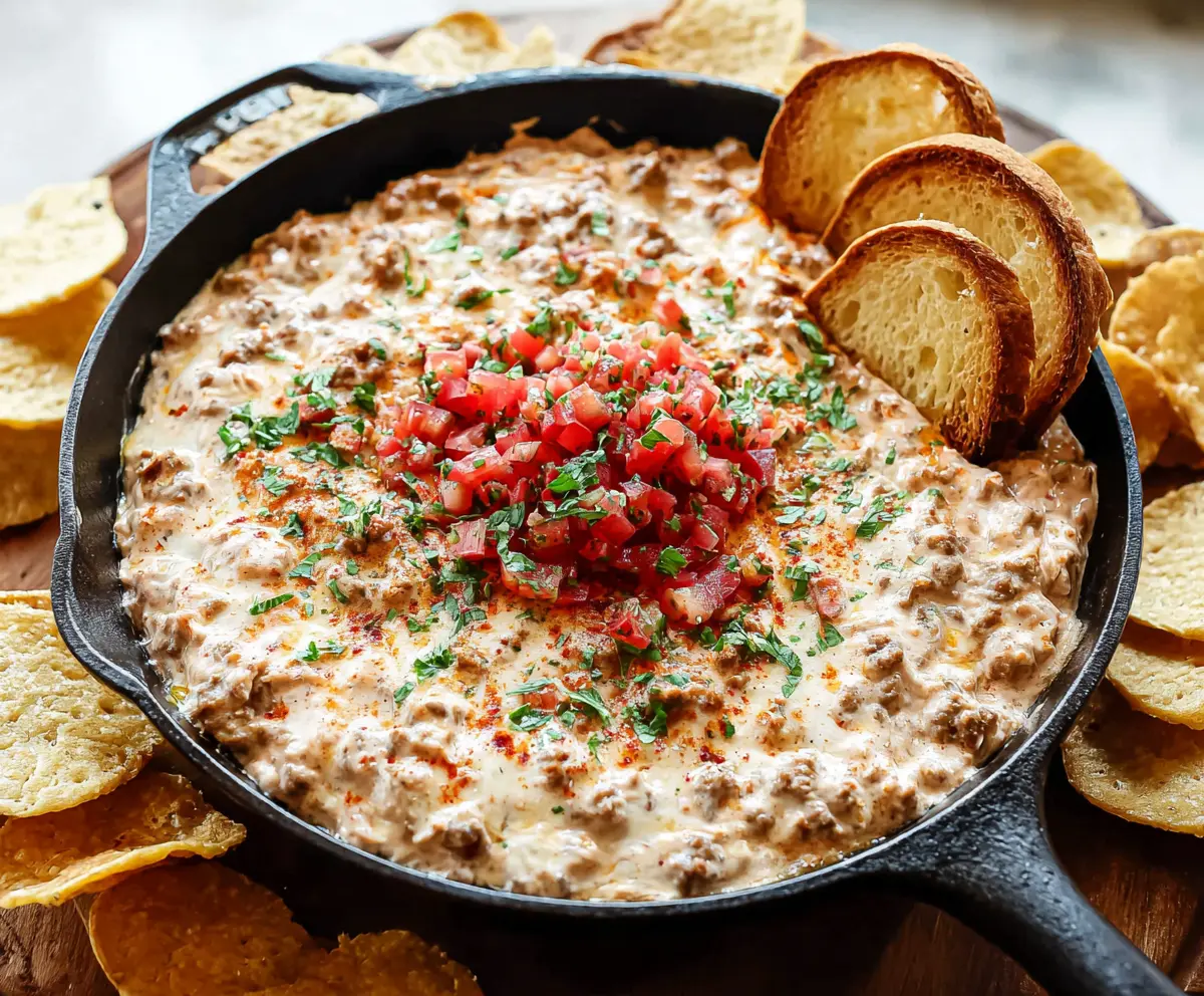 This Sausage Cream Cheese Dip is a warm and cheesy treat perfect for snacking. Made with savory sausage and creamy cheese, it’s sure to please a crowd!
