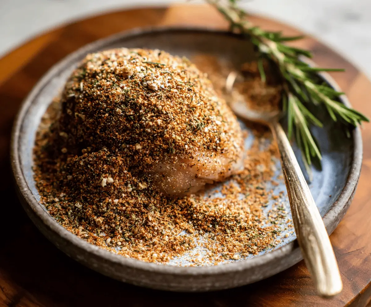 Start by gathering all your spices in a small bowl. Add the kosher salt, black pepper, paprika, garlic powder, onion powder, dried thyme, crushed rosemary, dried sage, and cayenne pepper if you’re feeling spicy. Use a spoon to stir everything together until well mixed.