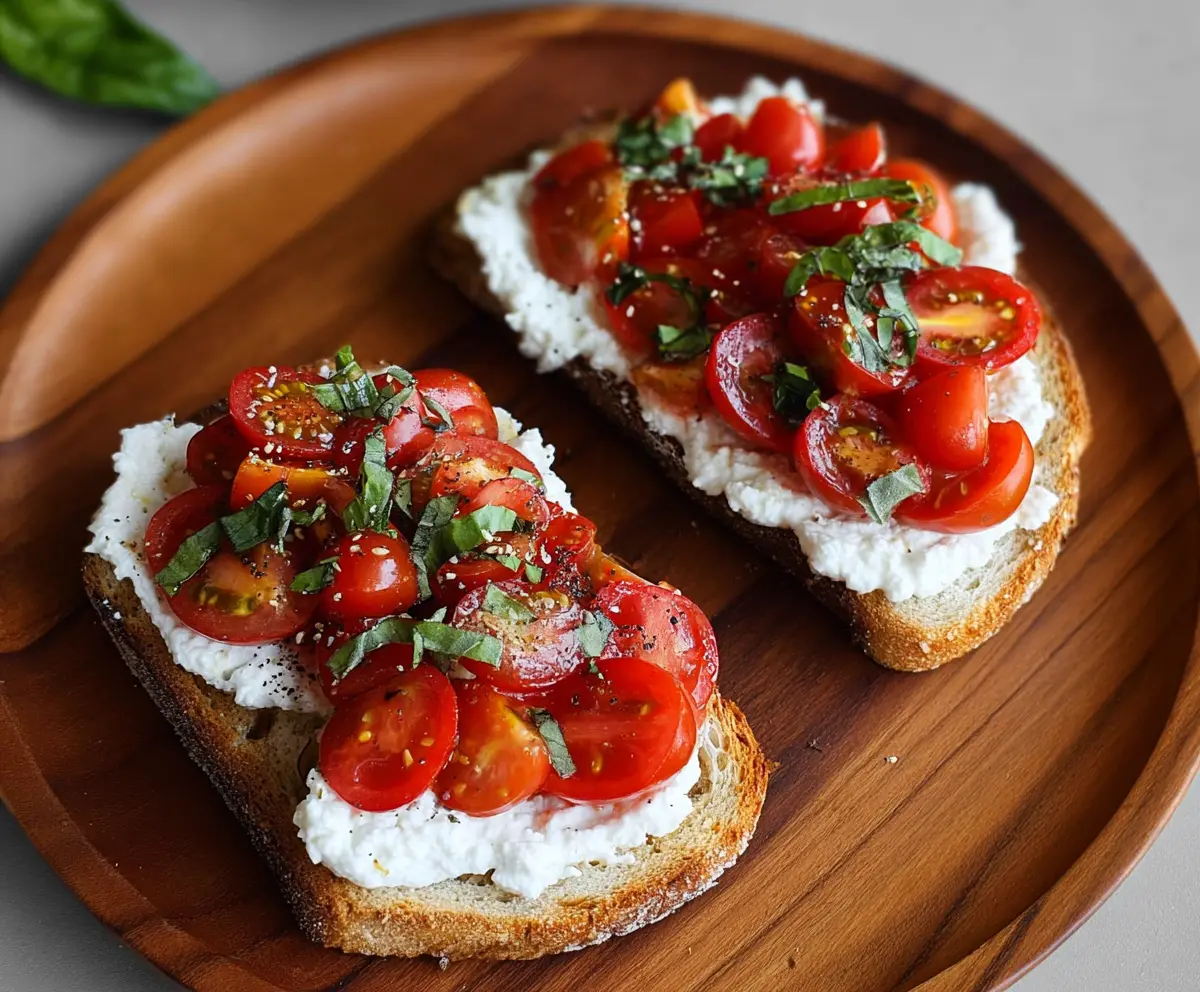 This dish beautifully combines the creamy texture of cottage cheese with the delicious sweetness of roasted tomatoes, all on a crunchy base. Enjoy your lovely creation!