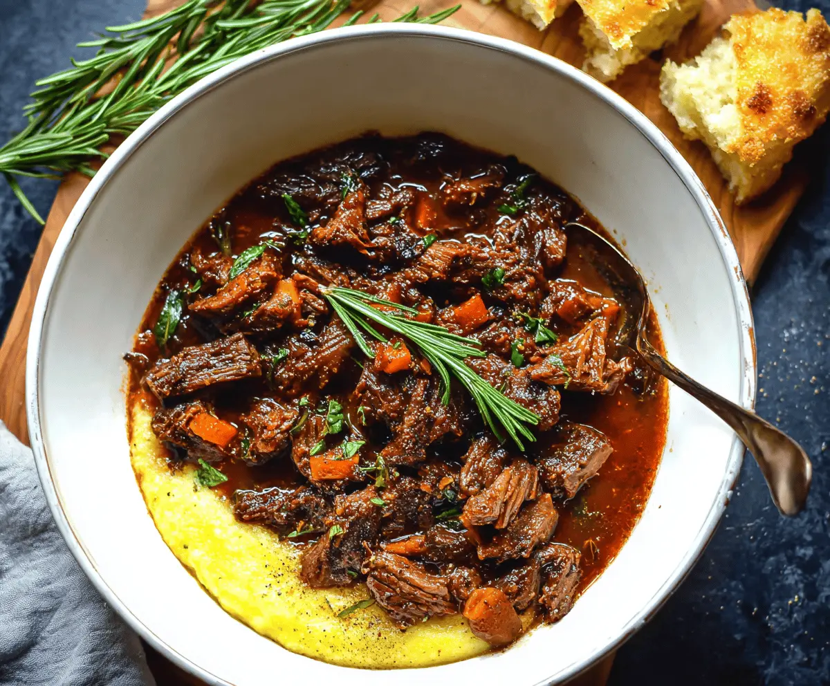 Serve your hearty Tuscan Beef Stew hot over creamy polenta or mashed potatoes. Garnish with fresh parsley, a sprig of rosemary, and a sprinkle of grated Parmesan cheese. Don’t forget some crusty bread on the side to soak up all that delicious sauce!